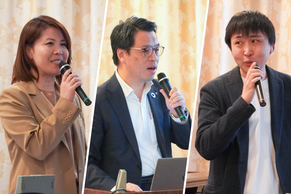 続いて、社会福祉法人あかねの松本優賀、尼崎信用金庫の岡田博⾏氏(サスティナブル推進部 部⻑)、尼崎市の杉下哲大氏(イノベーション推進担当課 課⻑)が登壇。尼崎の地でそれぞれの立場から取り組みの立ち上げ経緯や課題、乗り越えてきた壁、そして生まれつつある成果や今後の展望を共有しました。