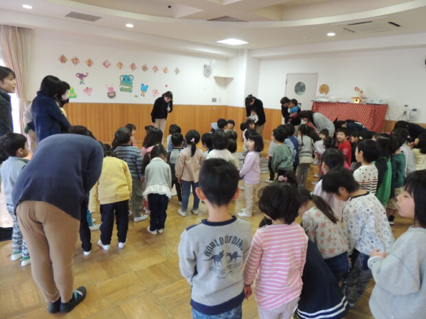 としはじめ 1歳児(こいぬ組), 2歳児(うさぎ組), 3歳児(いるか組), 4歳児(きりん組), 5歳児(はくちょう組), 一時保育(くじら組)By tanabata-staff2020年1月11日Leave a comment1月6日にとしはじめを行いました まずは皆で年始のごあいさつ 「あけまして おめでとうございます!」 園長先生のお話を聞いた後、先生の今年の抱負を 聞きました。 「一日一善、一日一回は良いことをします!」 …
