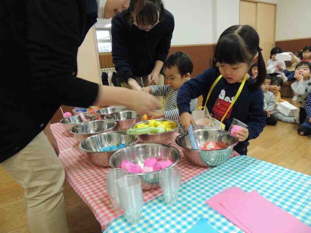 1月31日に うさぎぐみ・くじらぐみで お店屋さんごっこをしました お店は・・・ マクドナルド ジュースやさん 31アイスクリーム 自分でハンバーガーを作ったり、 ポテトを入れた…