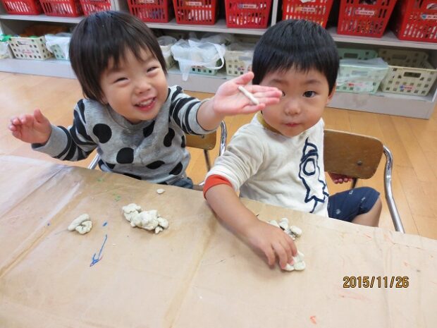 一気に外が寒くなってきましたね~! こいぬ組のみんなは寒くなっても元気いっぱい遊んでいます★ 最近やり始めた粘土あそび! ちゃんと丸めたり伸ばしたり考えて作っていますよ~ &nb…