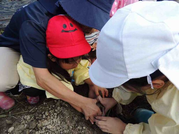 16日にうさぎ、いるか、きりん、はくちょう組でいもほりへ行きました 今年も大きなお芋がたくさん みんな、張りきって掘っています うさぎ組は初めてのいもほりでしたが、 はくちょう組に手伝ってもらいながらたくさ…