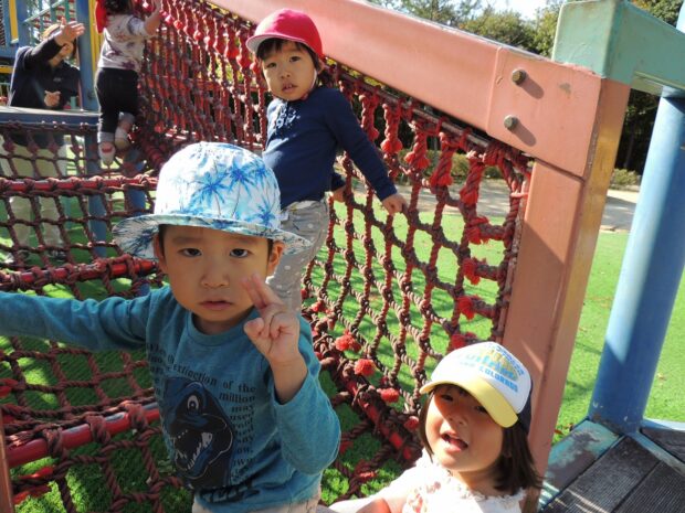 11月4日(金)お天気は晴れ くじら・うさぎ・いるか組で一庫公園まで遠足に行きました!! お弁当と水筒を持って朝からワクワクいざで出発~!! 丸太の橋や長いすべり台を滑ったり・・・  …