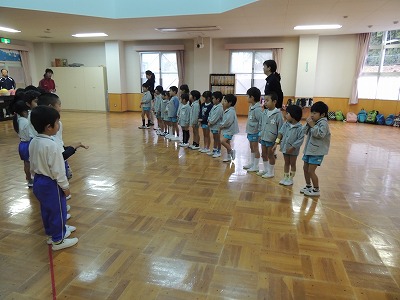 猪名川保育園に5歳児(はくちょう組)のお友だちがあそびに行かせていだたきました🚌 猪名川保育園の5歳児(ゆり組)さんどんなお友だちがいるのかな?とドキドキのはくちょう組のお友だち 挨拶では緊張していました…