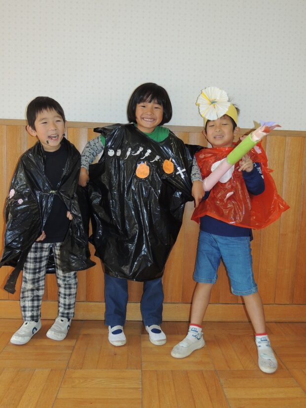 今日は楽しいハロウィーン 今からおどかしに行くぞ! そうそう!合言葉は 「トリック オア トリー…