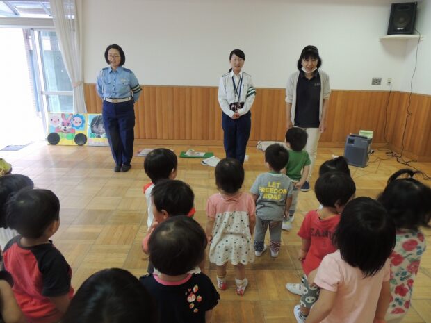 うさぎ・くじら組は交通安全教室でした 天気はでしたが、朝の歌は元気いっぱいでした うさちゃんクラブでは毎度おなじみ、みんなの人気者 ふくちゃんも登場してお話しを聞きました。 みっつのお約束 ①…