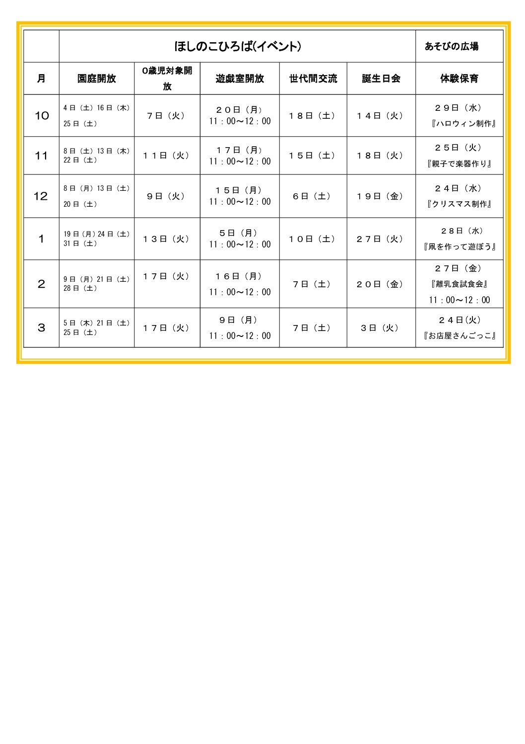 ☆ほしのこ広場 AM10:00~11:00 (5分前には集合してください)