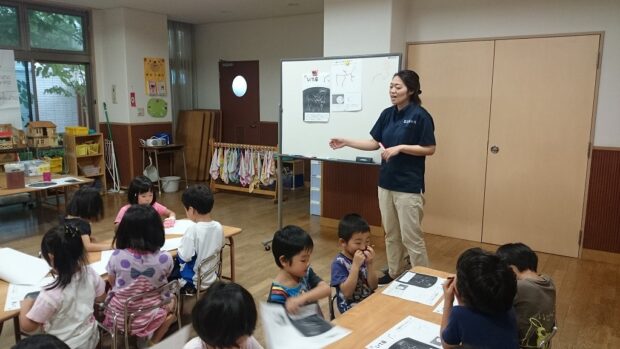 先日、きりんぐみ(4歳児)のお友達が 星空観察をしました 夕方から始まり、 「今日はみんなでお星さまを見るよ~」 とお話しをしていますが、まだ外は明るいので 暗くなるまで待ちます 最初のお楽しみは、宝探し!…